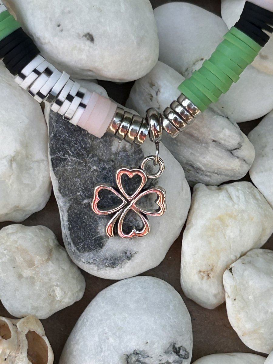 Pendentif trèfle argenté.
